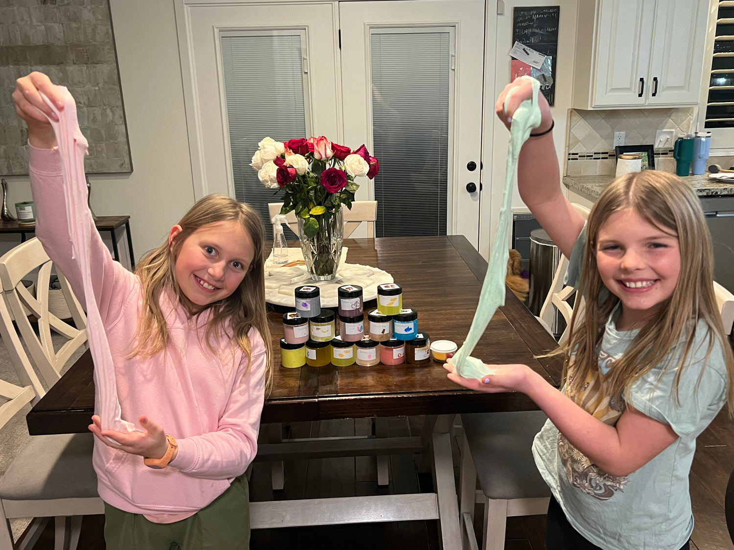 We make all our slimes by hand and all the slimes are scented and the slimes feel amazing. Our slime is also made with nontoxic ingredients so you can feel safe playing with it.